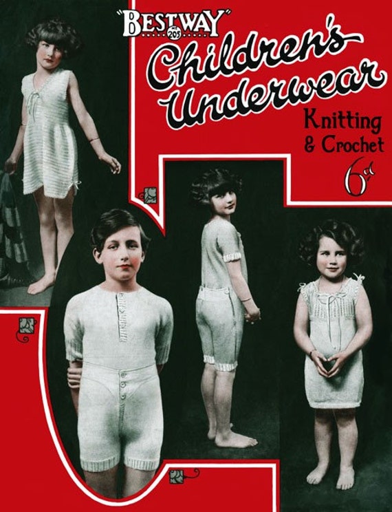 В 1920-е очень распространяется вязаное детское белье. Вязали его из х/б ниток. Но это развлечение для домашних хозяек: связать что-то для своего чада. Но поскольку тогда бельё шили постоянно (в России – на дому или в артелях), то в этом нет ничего удивительного.