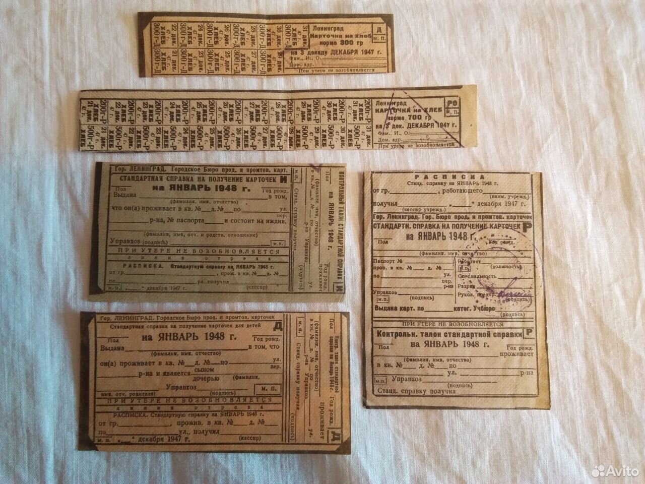 карточки 1947-1948 гг.