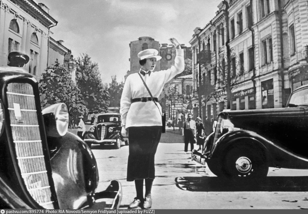 Вот на девушке -милиционере - фуражка. Автор фото неизвестен (Возможно Семен Фридлянд). Женщина-регулировщица. 1937.